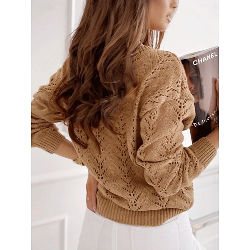 HOT ! Women's Sweater Casual Soft Pure Color Ribbed V Neck Hollow Out Knitted Long Sleeve Regular Tops Knit Outdoor Daily Weekend White Pink Fall Winter