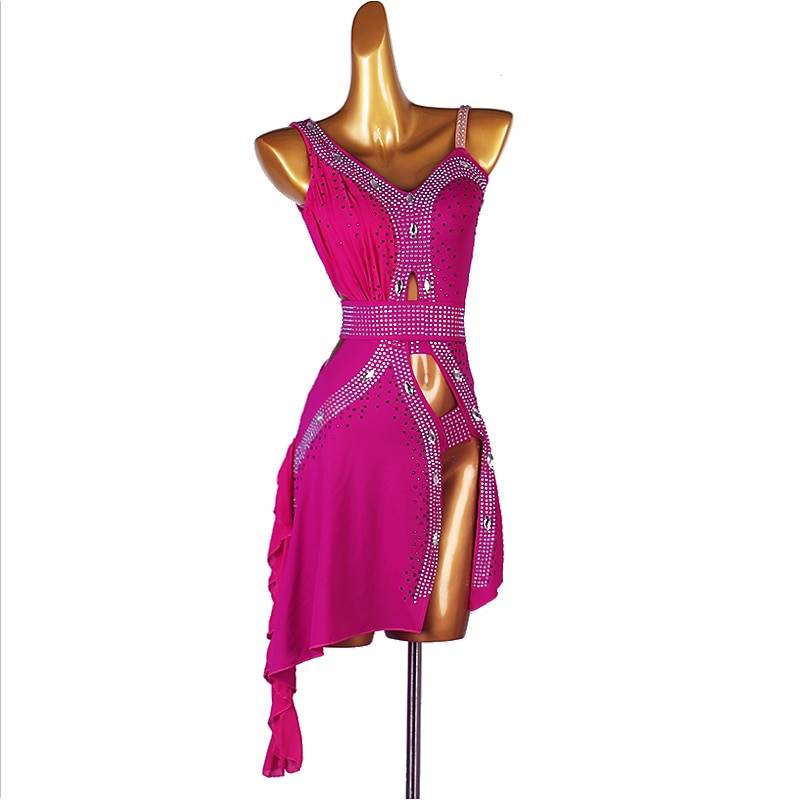 HOT ! Dance Salsa Latin Dance Dress Crystals / Rhinestones Women's Ladies Training Performance Sleeveless Spandex / Jazz