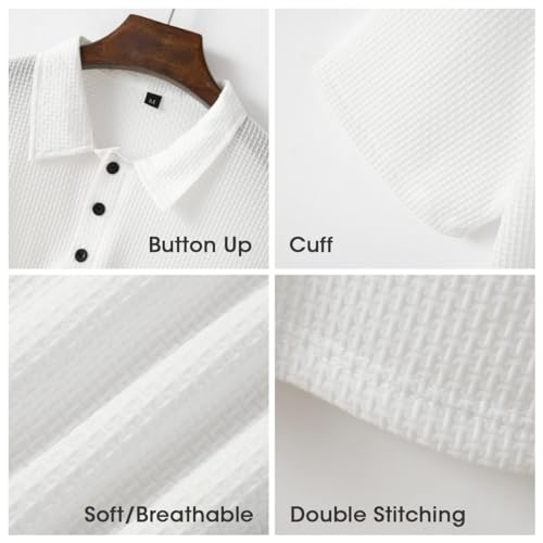 Fabric type: 100% PolyesterCare instructions: Machine WashOrigin: ImportedNeck style: V-Neck【QUALITY MATERIAL】Our men's polo shirt is made of ice silk nylon material,offering lightweight,no pilling and not easy to wrinkle,it has good breathability and,the skin-friendly fabric provides you with breathable,soft and comfortable feeling all day long.【HIGH-END DESIGN】Our mens shirts with fashionable button design,lapel collar,regular fit,mesh details,not only add style to the t-shirt,casual waffle polo shirt for men,elevate your appearance,adding a touch of sophistication to your ensemble,showing your exclusive charm.【OCCASIONS】Our men collared shirt slim fit can be used on many occasions,whether it is home casual wear or outdoor sports,great for wearing to the office,or lounging around home,suitable for any casual occasion, such as business,office work,party,dating,travel,vacation,fishing,golfing,running,hiking,tennis,cycling,camping.【EASY MATCHING】This mens button down short sleeve shirt in a wide range of colors,with jeans,shorts or chinos for a more casual look,you also could wear a work polo shirts for men with a blazer or suit pants for a fashion businss look,a must-have for any man's wardrobe!【VARIOUS USE】This mens polo T shirt is easy to match for a daily look,can be a business casual shirt,also can be a golf polo shirts for men,great gift for husband,friends or boyfriends! Perfect for everyday use. first-class materials and excellent craftsmanship ensure long-lasting durability.