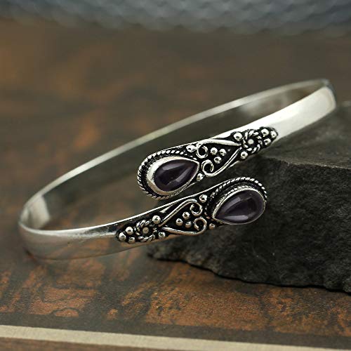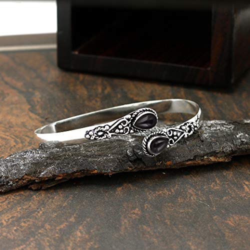 More information about Pear Shape Natural Gemstones Bangle for Women - 925 Sterling Silver Plated Handmade Cuff Bracelet - Birthstone Adjustable Open Bangle Jewelry - Gift for Wedding Anniversaries Valentine's Day Christmas
