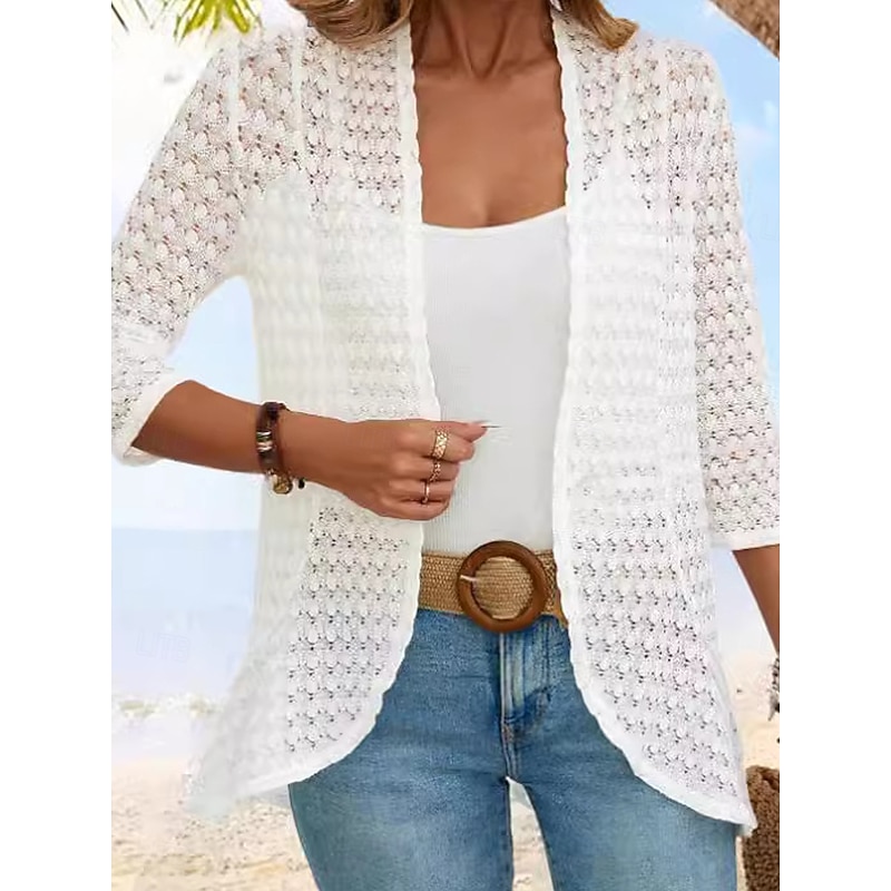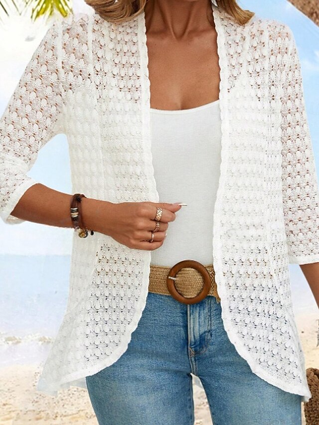 More information about Women's Casual Jacket Outdoor Cut Out Solid Color Windproof Fashion Regular Fit Outerwear 3/4 Length Sleeve Fall White S