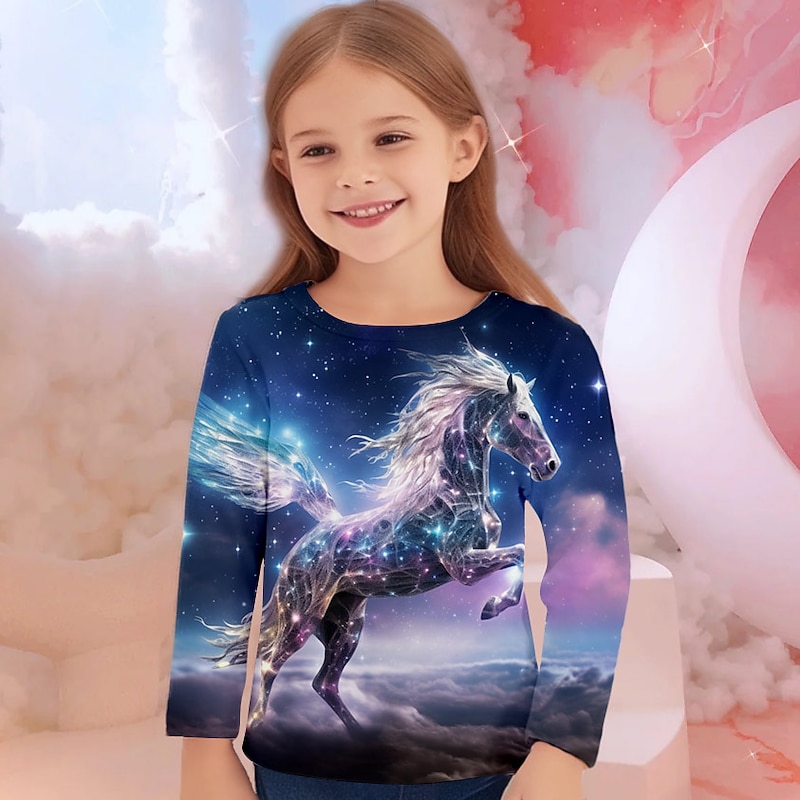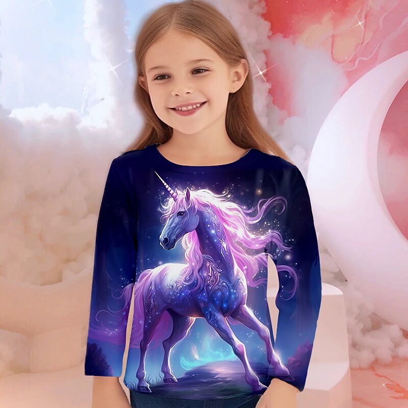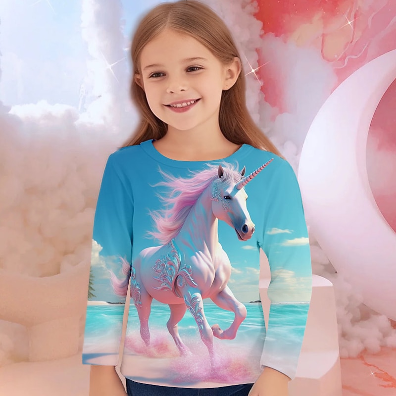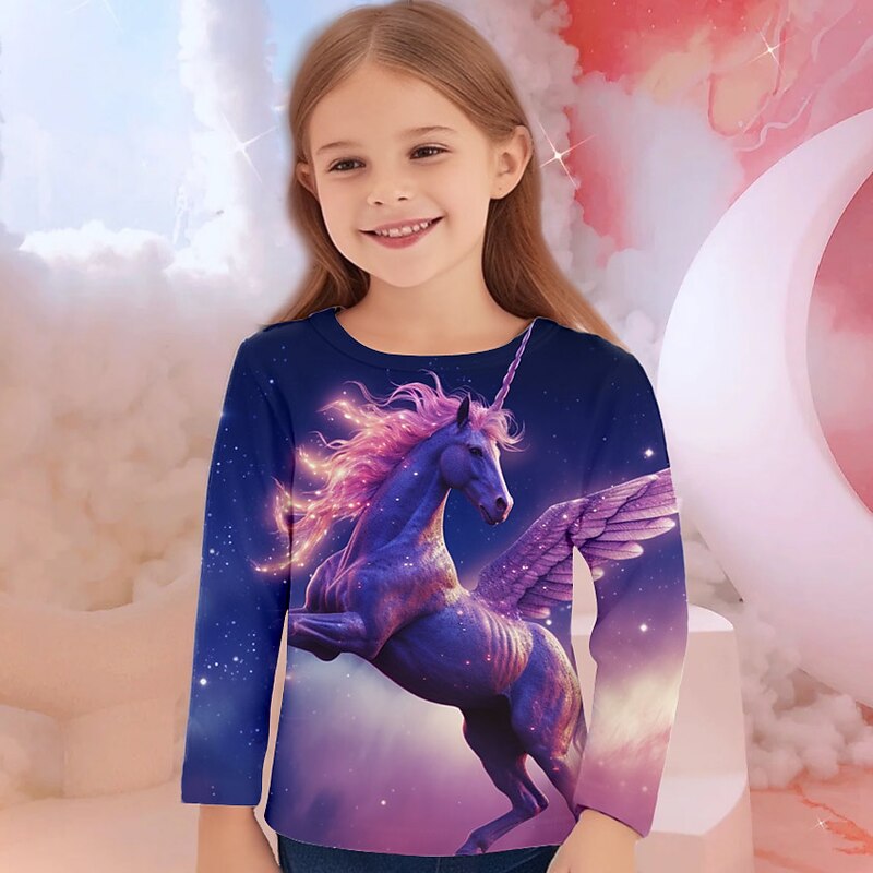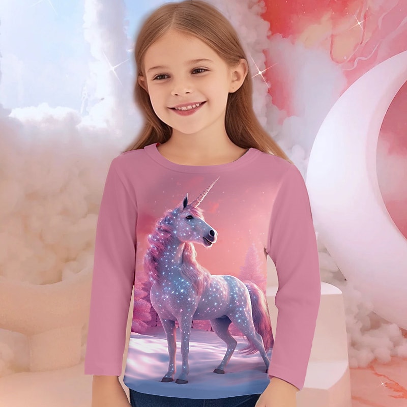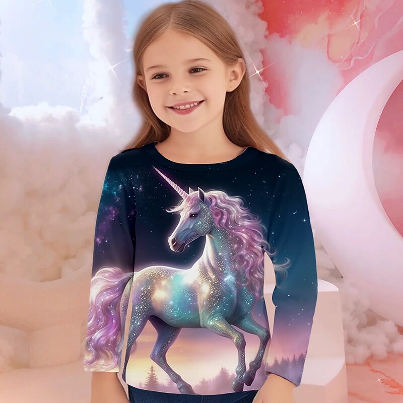 More information about Girls' 3D Unicorn Tee Shirts Long Sleeve 3D Print Fall Winter Active Fashion Cute Kids 3-12 Years Crew Neck Outdoor Casual Daily Regular Fit