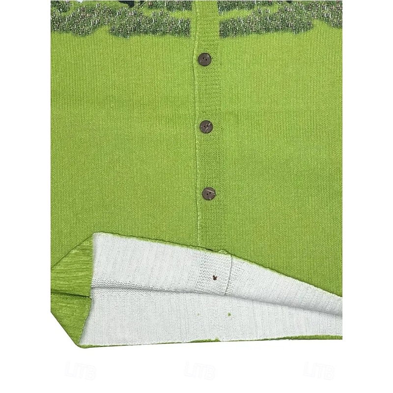 Women's Cardigan Sweater Knitted Ribbed Button Front Round Neck Long Sleeve Lightweight female Daily Animal Crew Neck V Neck Buttons Print Long Tops Knit Outdoor Weekend Green Fall Winter 4