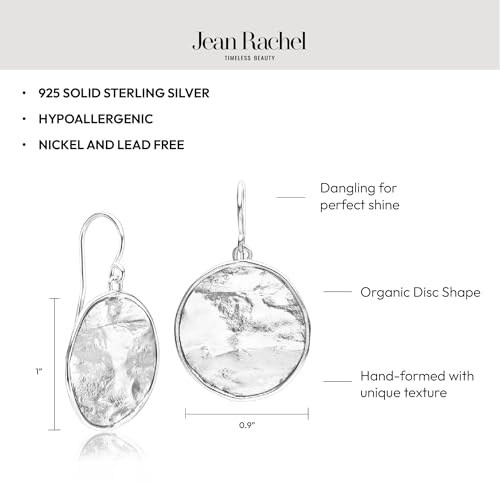 HOT ! Jean Rachel Jewelry 925 Sterling Silver Dangle Earrings for Women - Textured Round Disc Vintage Design - Hypoallergenic, Lead & Nickel Free Jewelry - Artisan Handcrafted Statement Earrings