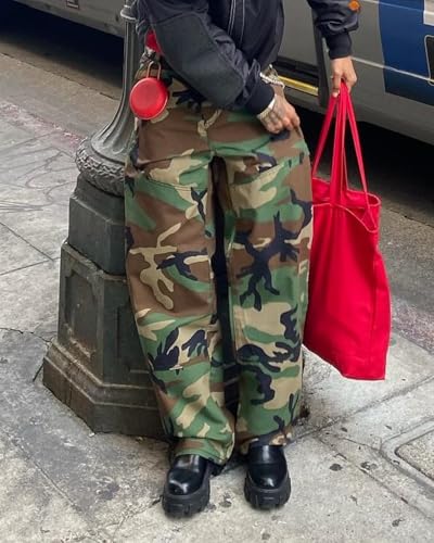 Men's Baggy Camo Cargo Pants Casual Relaxed Fit Wide Leg Straight Trousers Zipper Hip Hop Pants with Multi Pockets 6