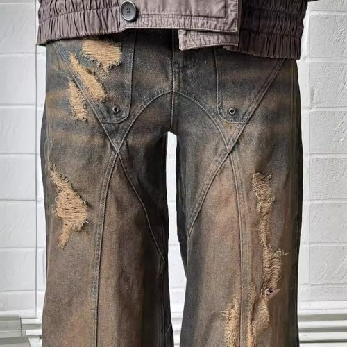 HOT ! Men's Vintage Ripped Jeans, Hip-hop Workwear Denim Pants, Y2K Jeans, Gothic Straight Tube Loose Wide Leg Pants