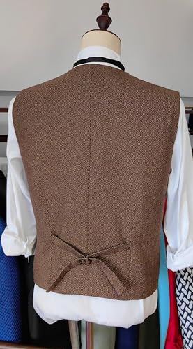 • Design:This wool tweed mens vest made of herringbone tweed pattern,single breasted with 5 vintage buttons,4 real practical and functional pockets,adjustable back strap,western vest for men cowboy vest,v neck regular fit