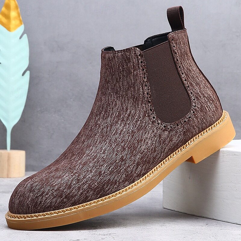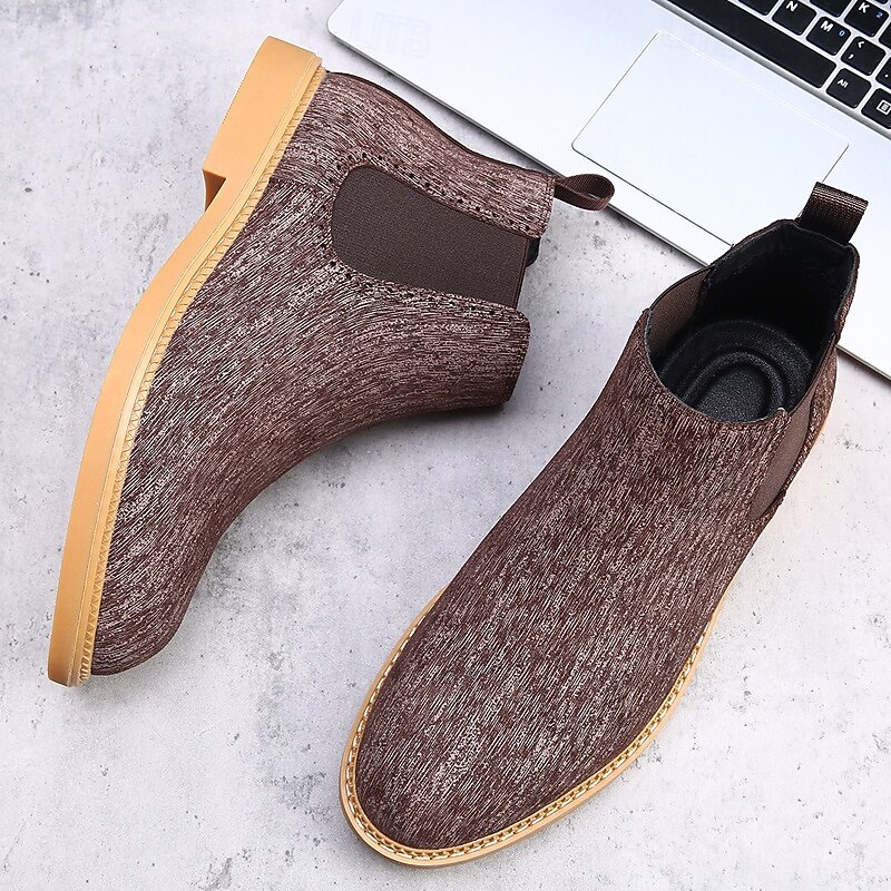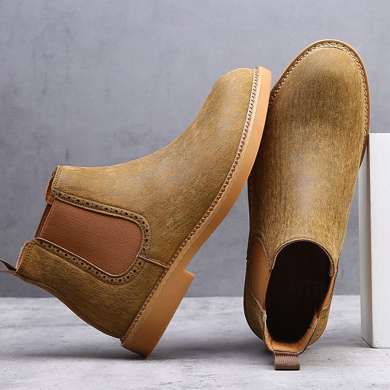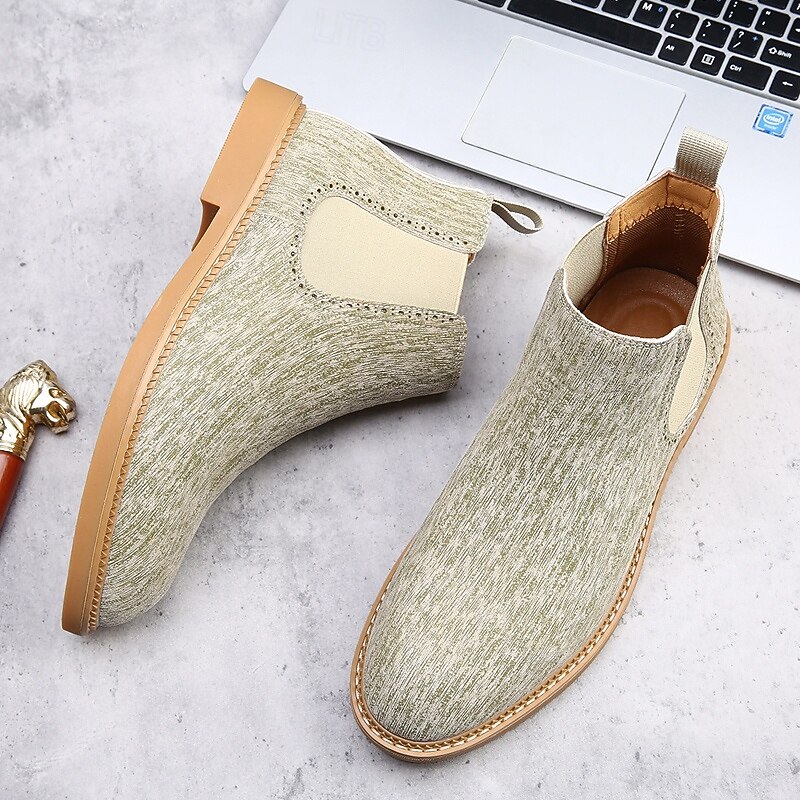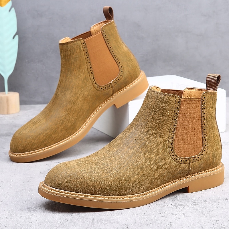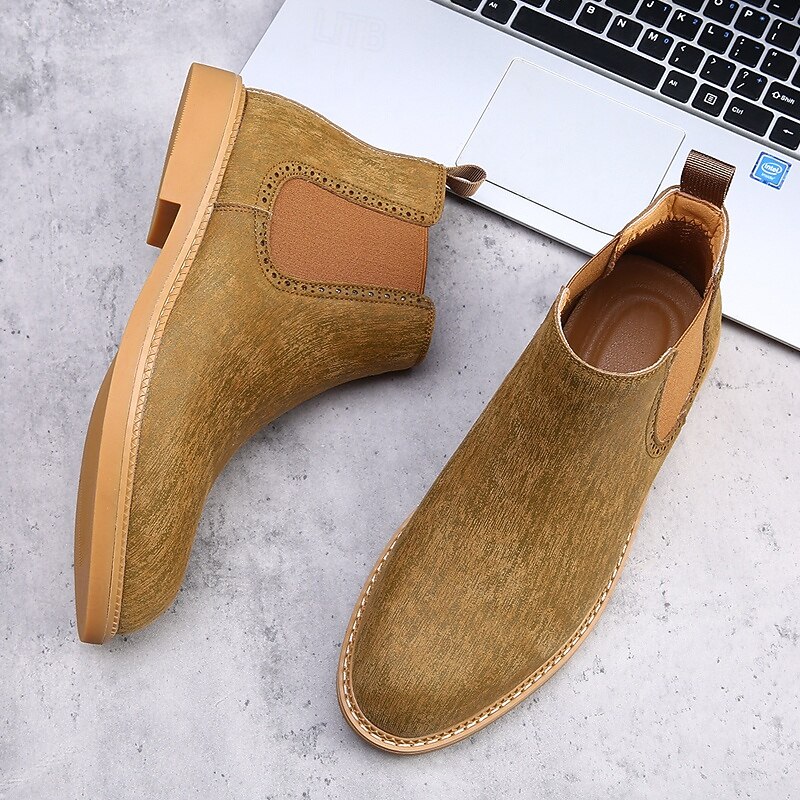 Men's Khaki Chelsea Boots Lightweight Casual Ankle Style with Elastic Gussets for Office, Weekend Outings and Everyday Comfort 25