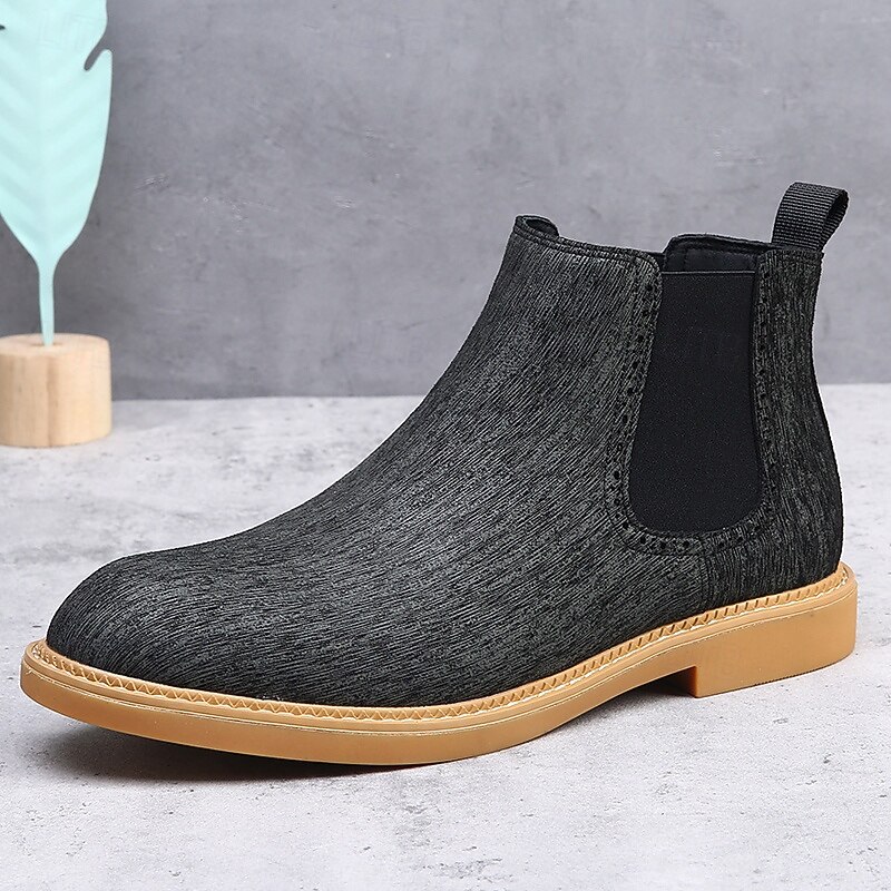 Men's Khaki Chelsea Boots Lightweight Casual Ankle Style with Elastic Gussets for Office, Weekend Outings and Everyday Comfort 35