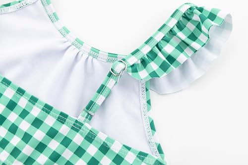 LIZENS Girls Two Piece Swimwear Green Checkered Tankini Set Cute Bathing Suits for Kids 3