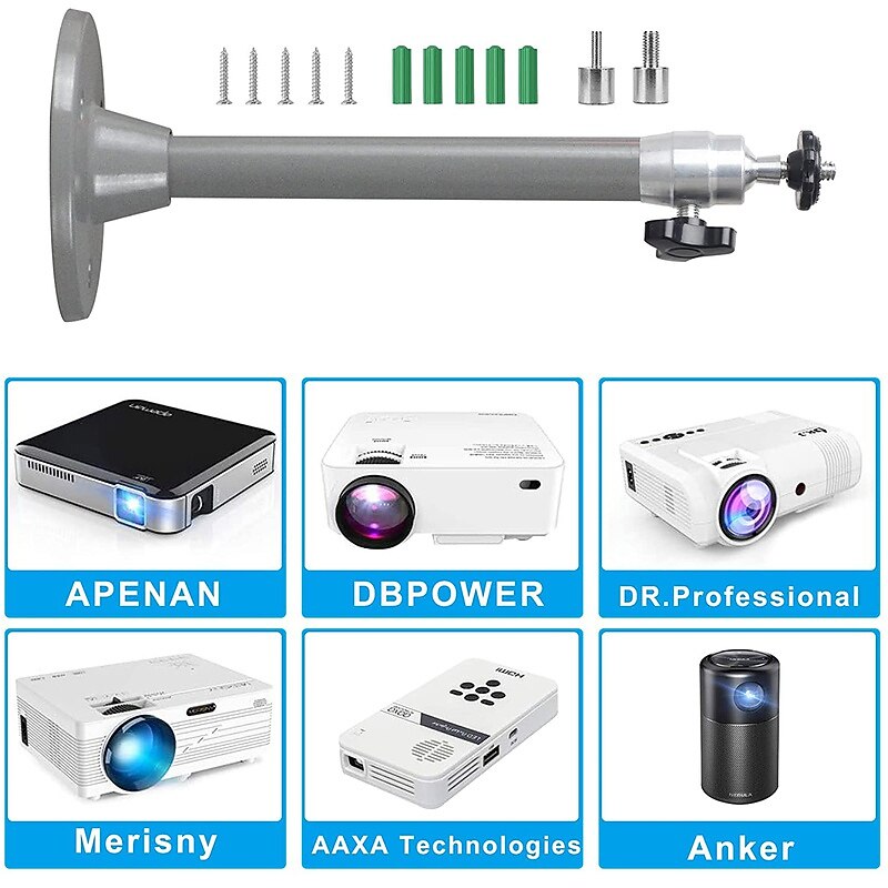 Universal Mini Ceiling Wall Projector Mount Stand Compatible with QKK, DR.J, DBPOWER, Anker, VANKYO AAXA Jinhoo PVO TMY  AuKing 7
