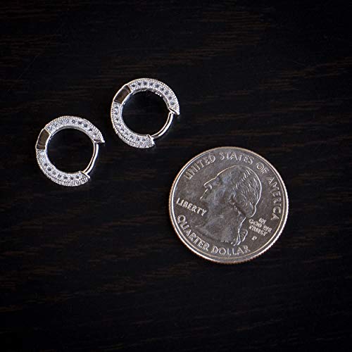 Small Iced CZ Bling Hoops with Cubic Zirconia 14K White Gold Plated 925 Sterling Silver Trendy Hip Hop 12mm Ice Out Huggie Hoop Earrings Jewelry Gifts for Men And Women 6