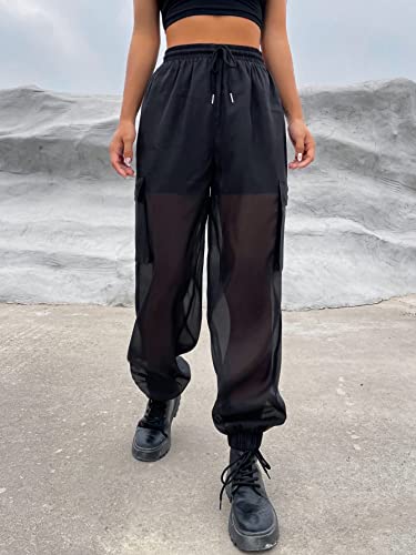 More information about OYOANGLE Women's Mesh Sheer Drawstring Waist Flap Pocket Streetwear Jogger Cargo Pants