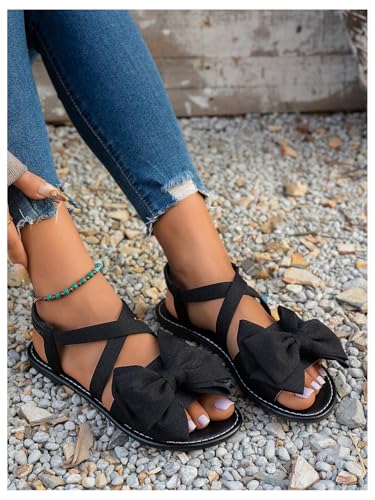 GORGLITTER Women's Ankle Strap Bow Sandals Criss Cross Open Toe Bowknot Dressy Beach Flat Sandals 2025 5