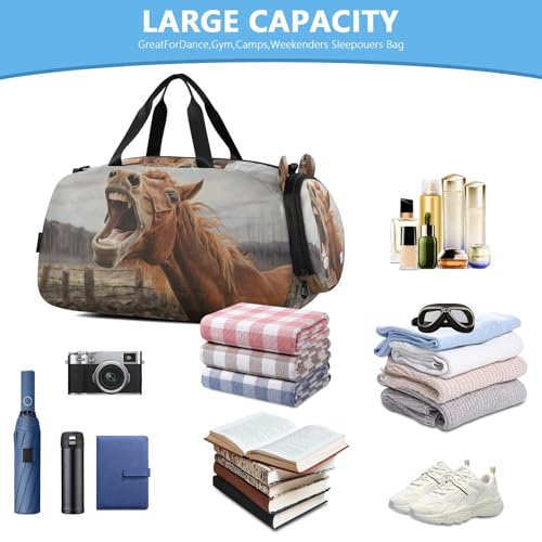 YETTASBIN Sport Travel Duffel Bag for Girls Boys, Horse Large Waterproof Weekender Overnight Bag, Detachable Shoulder Strap Gym Bag with Shoe Compartment & Wet Pocket 5