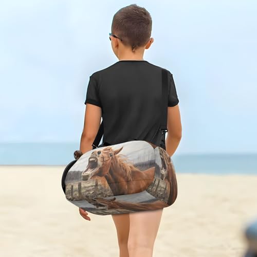 YETTASBIN Sport Travel Duffel Bag for Girls Boys, Horse Large Waterproof Weekender Overnight Bag, Detachable Shoulder Strap Gym Bag with Shoe Compartment & Wet Pocket 6