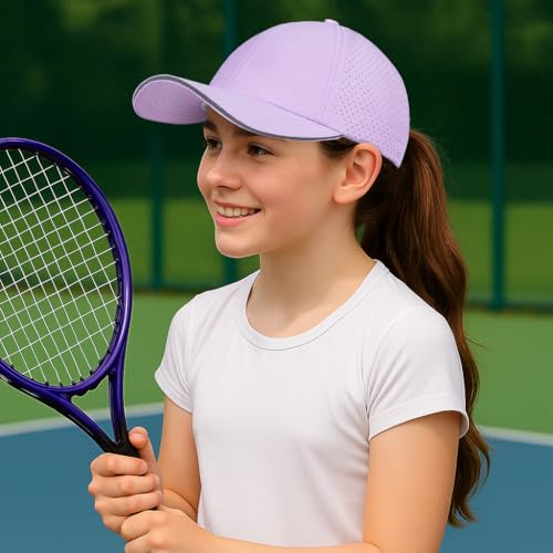 Ponytail Hat for Girls, Criss Cross Baseball Cap with Reflective Brim, Quick Dry Sports Hats for 7-12 Years 6