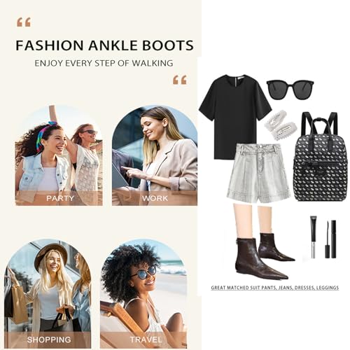 • 【Design】:These ankle boots featuring a pointed toe,flat and Invisible height increasing wedge design,to highlight your body proportions. Invisible height heel approx 1.18-inch,not only elevates your height but also ensures stability and comfort during walks.And the hand-stitched upper is durable,while adding classic design to the trend of the elements to keep you fashionable.