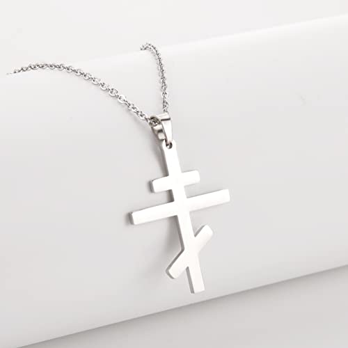 More information about EUEAVAN Orthodox Cross Pendant Necklace Stainless Steel Classic Cross Pendant Necklace Russian Orthodox Amulet Jewellery Religious Necklace