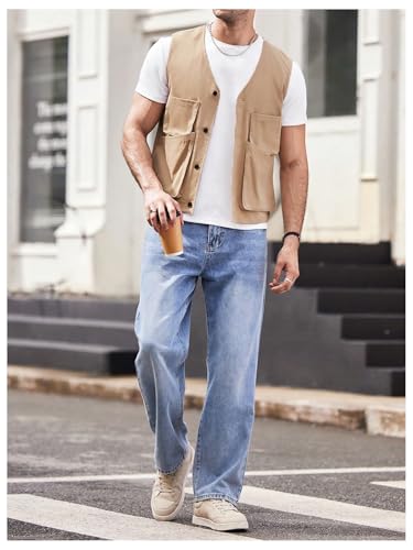 HOT ! Verdusa Men's Button Up Sleeveless Utility Cargo Vest Jacket Waistcoat with Pockets