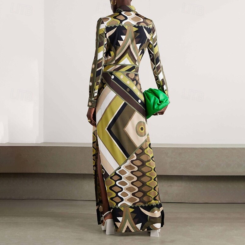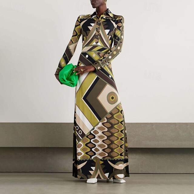 More information about Women's Long Dress Maxi Dress Print Dress Fashion Modern Outdoor Vacation Daily Regular Fit Geometric Long Sleeve Shirt Collar Green Fall