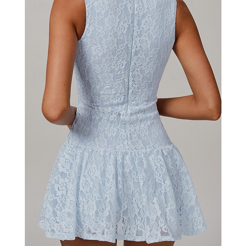 More information about Women's Solid Colored Tennis Dress with Built in Shorts and Bra Sports Dress Sleeveless Lace Breathable Tennis Pickleball Round Neck Dress Black White Sky Blue Lace Tennis Clothing