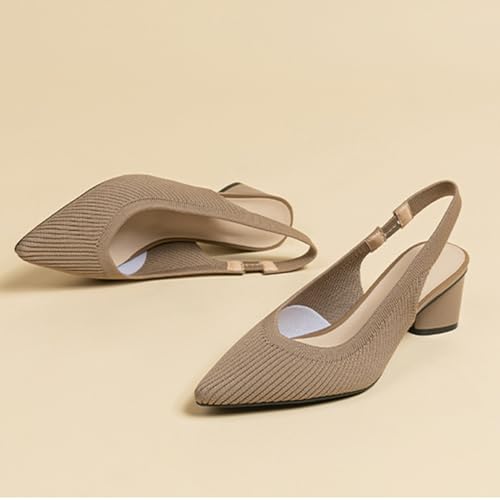 MRKEWUNEY Casual Knit Slingback Pumps for Women Slip On Chunky Low Heel Knit Pumps 6