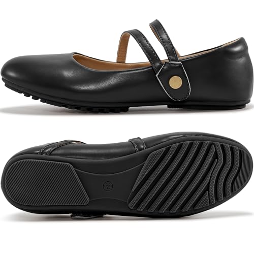 HOT ! HARENCE Mary Jane Flats for Women: Dressy Round Toe Double Strap Ballet Flats Comfortable Slip On Work Shoes for Wedding Driving