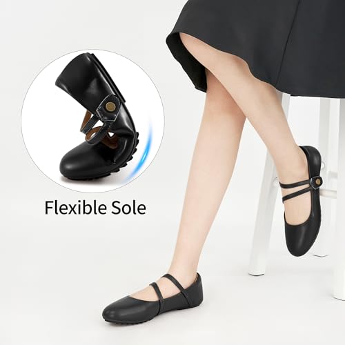 HARENCE Mary Jane Flats for Women: Dressy Round Toe Double Strap Ballet Flats Comfortable Slip On Work Shoes for Wedding Driving 5