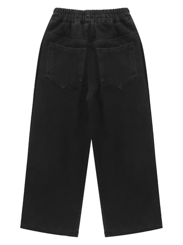 More information about Kids Boys Girls Button Side Straight Leg Cargo Jeans Hip Hop Trousers Elastic Waist Denim Pants Age 4-14 Years