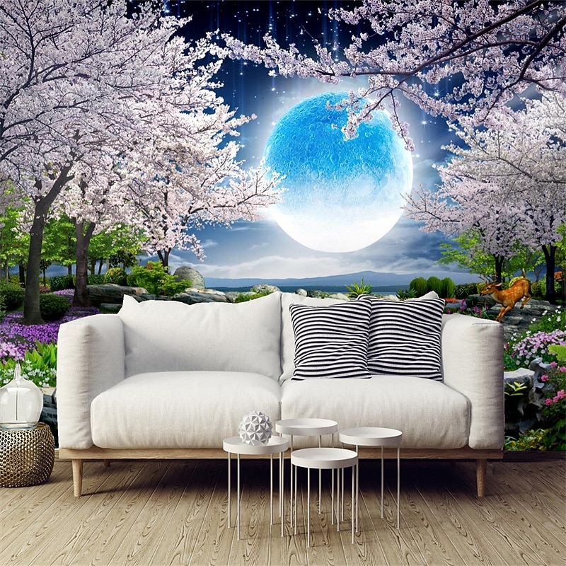 More information about Cool Wallpapers Wall Mural Landscape 3D Mural Wallpaper Night View Cherry Blossom Wall sticker Self-adhesive PVC/Vinyl for Living Room Bedroom Restaurant Hotel Wall Cloth Room Home Decor