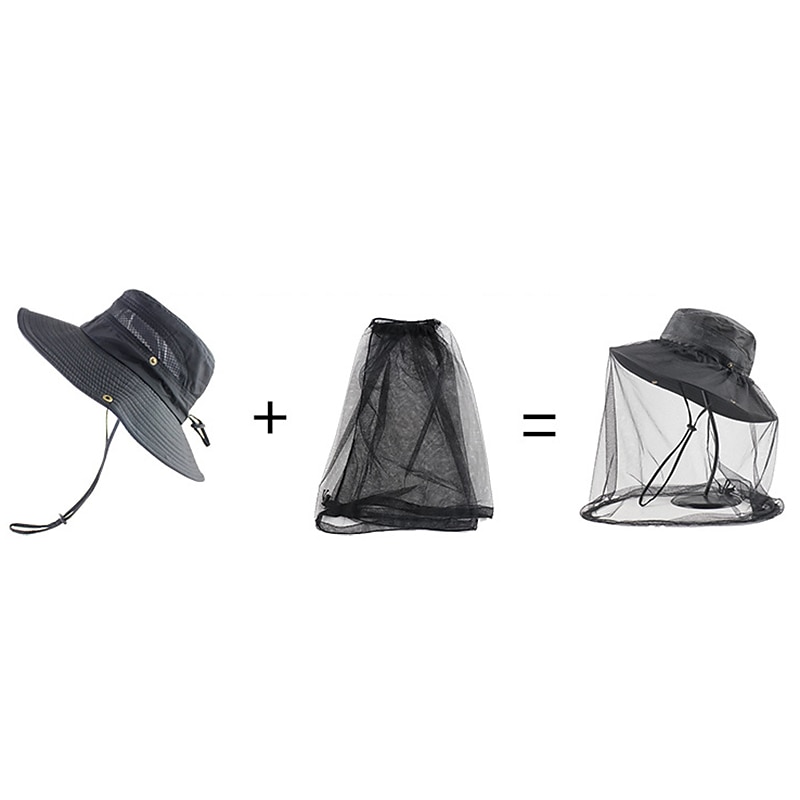Men's Women's Sun Hat Hiking Hat Mosquito Head Net Hat 1 pcs Summer Outdoor Portable Anti-Mosquito Anti-Eradiation Comfortable Patchwork Polyester Army Green Khaki Dark Gray for Fishing 19