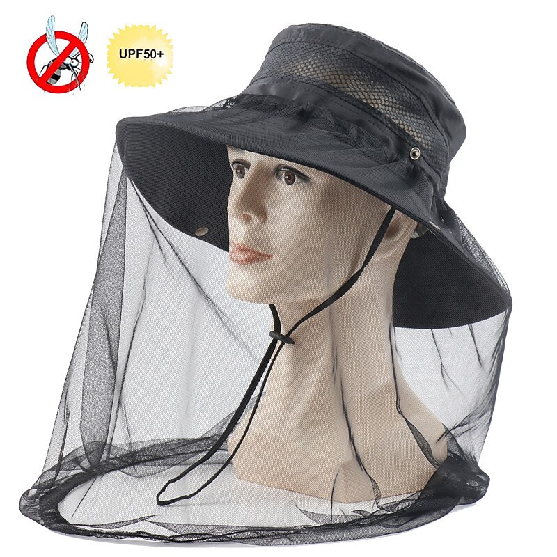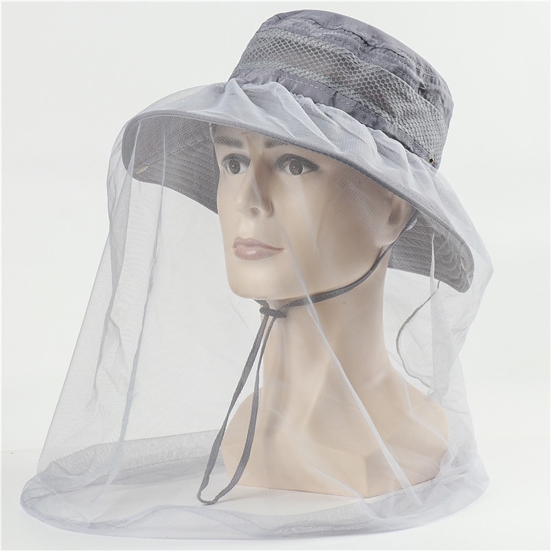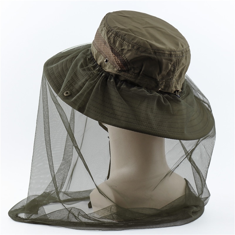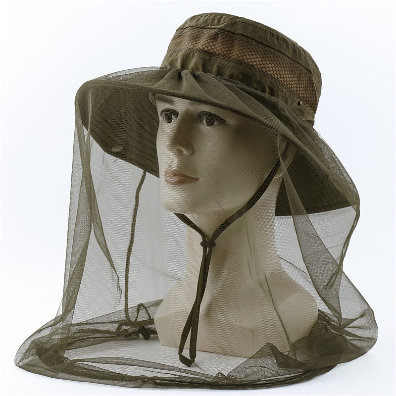 Men's Women's Sun Hat Hiking Hat Mosquito Head Net Hat 1 pcs Summer Outdoor Portable Anti-Mosquito Anti-Eradiation Comfortable Patchwork Polyester Army Green Khaki Dark Gray for Fishing 28