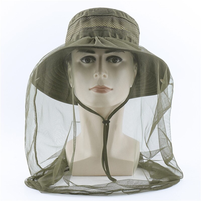 HOT ! Men's Women's Sun Hat Hiking Hat Mosquito Head Net Hat 1 pcs Summer Outdoor Portable Anti-Mosquito Anti-Eradiation Comfortable Patchwork Polyester Army Green Khaki Dark Gray for Fishing