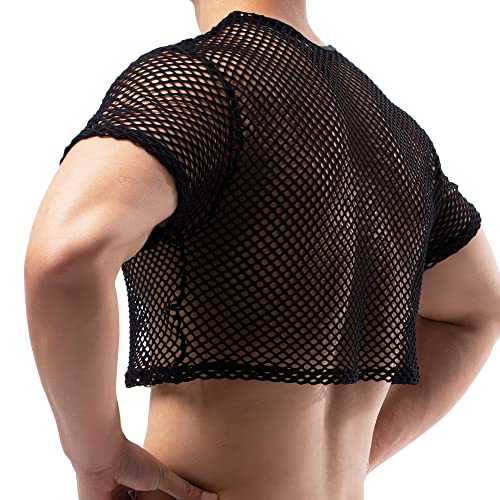 More information about Men's Fishnet Crop Tops Mesh T Shirt See Through Undershirt Nightwear Sheer Shirt