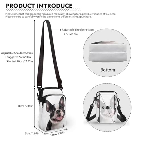• 【Size】: 4.3”(L) x 1.9”(W) x 7.0”(H) inch, this crossbody bag offers ample space with two zippered main pockets. Come with a detachable & adjustable long strap, length range from 27.5 to 50 in. It is suitable for holding your mobile phones up to 6.8 inch, Please measure your phone and phone case if fits the pocket before purchase