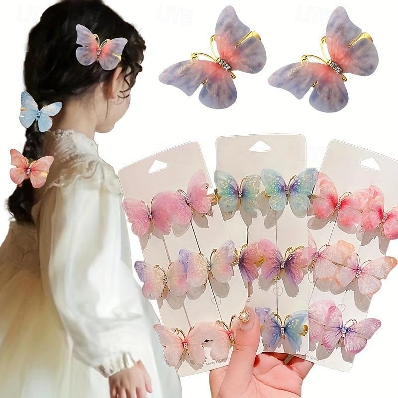 6 Pieces Kids Girls' Hair Accessories Sweet Party Daily Solid Color 6# pink 4# Butterfly Love 2