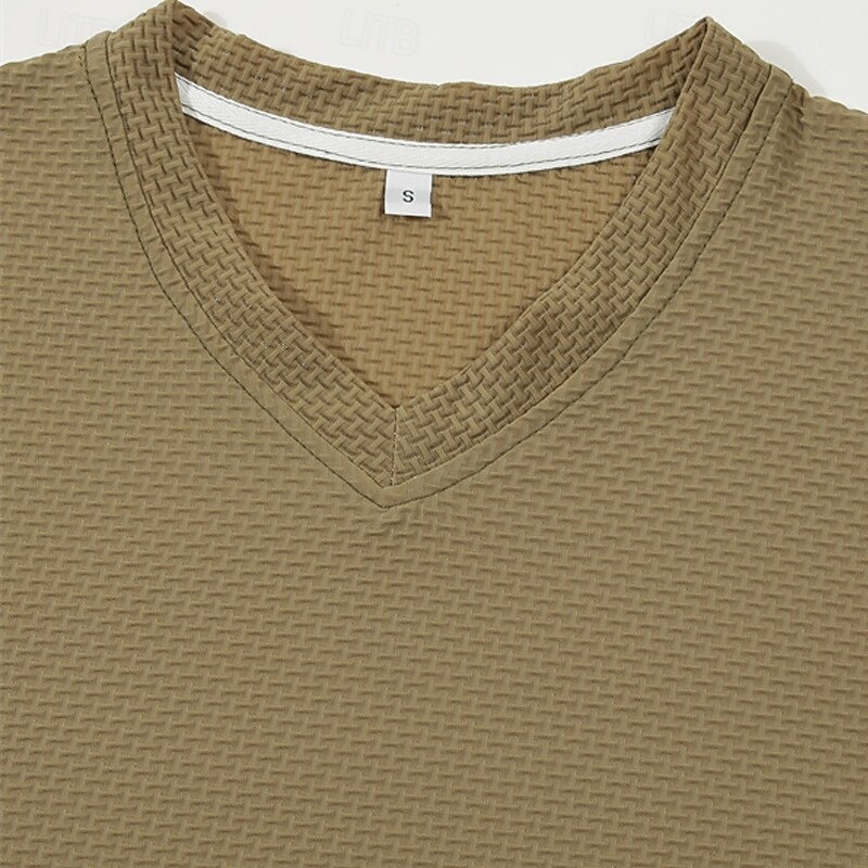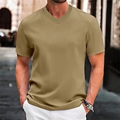 More information about Men's T Shirt Tee Short Sleeve Shirt Tee Top Short Sleeve V Neck Summer Plain Fashion Designer Basic Jacquard Vacation Street Going out Black White Khaki Top Tee for Men