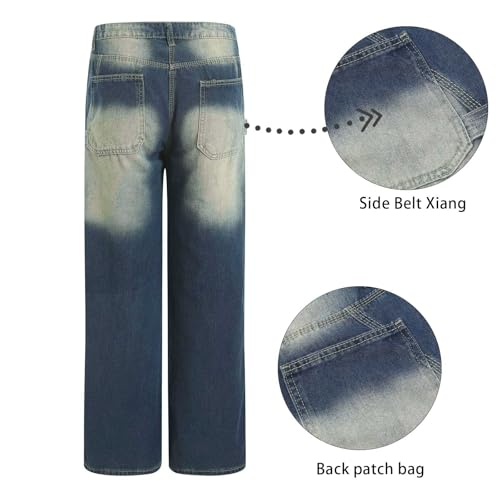 More information about Baggy Jeans Men Relaxed Fit Denim Pants with Pockets Casual Wide Leg Jean Trousers Hip Hop Y2K Streetwear