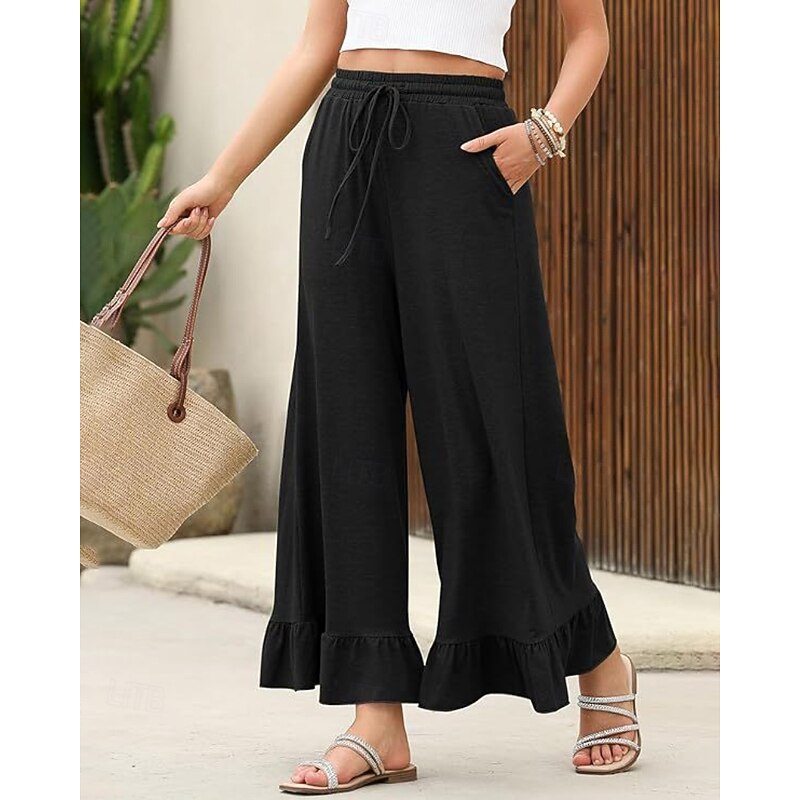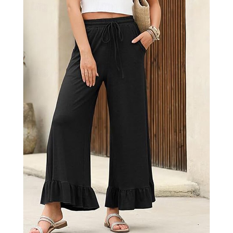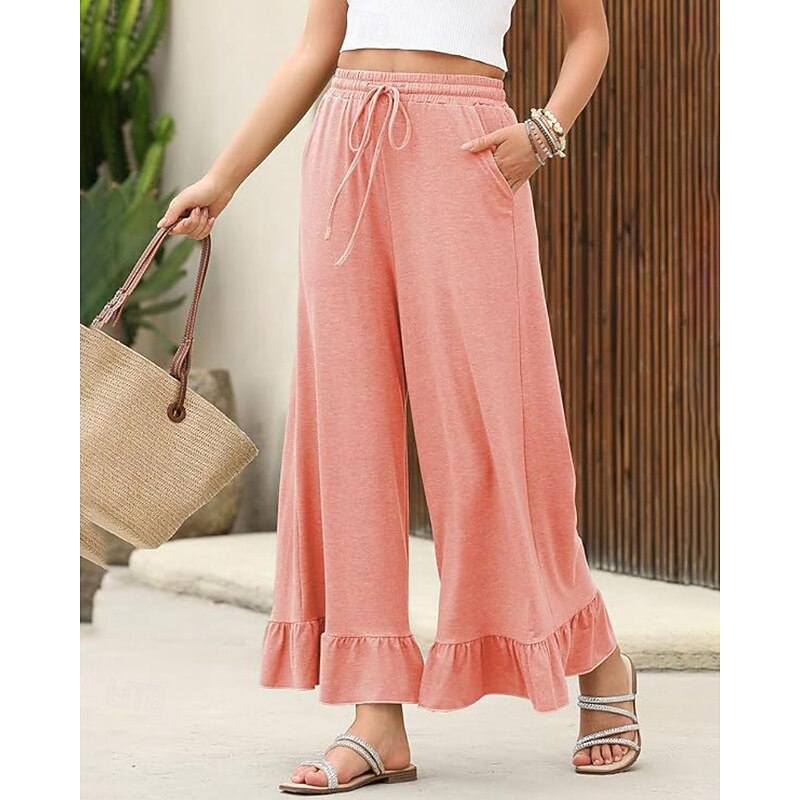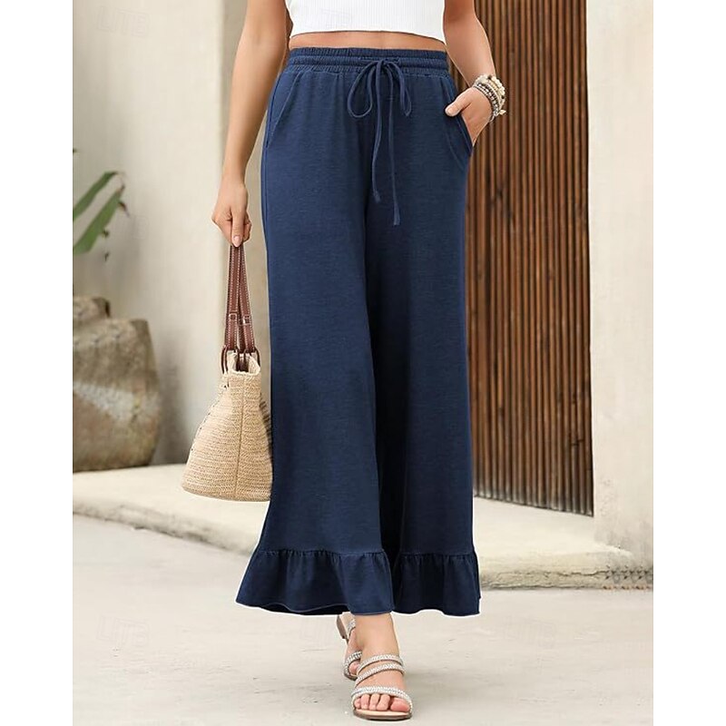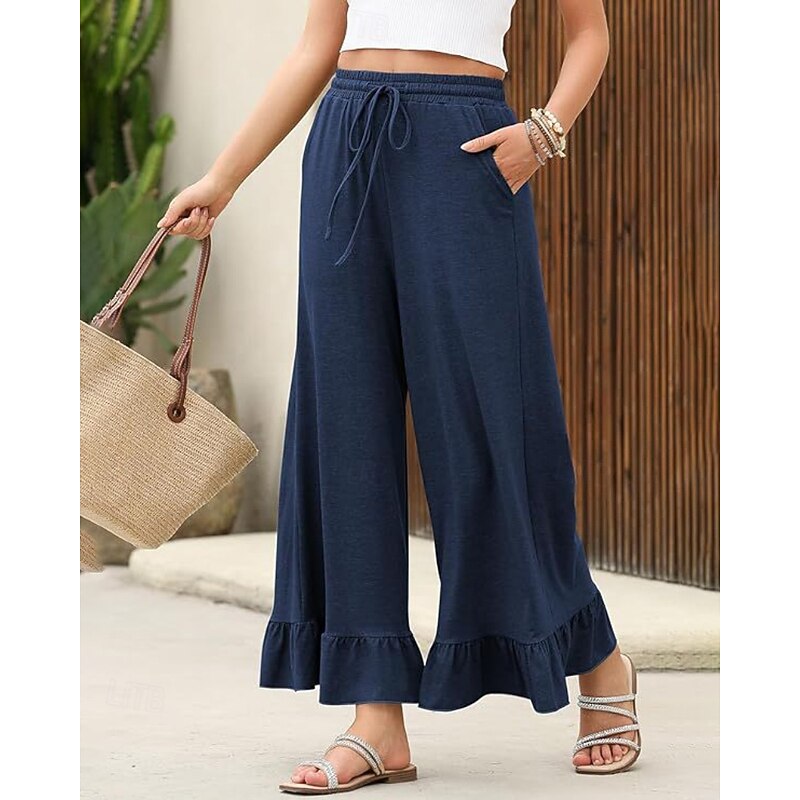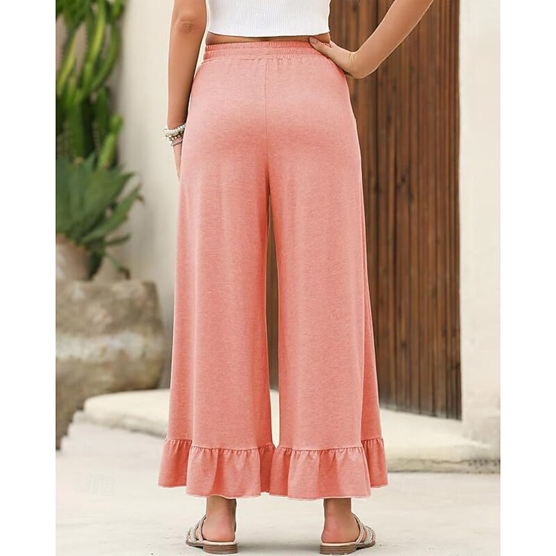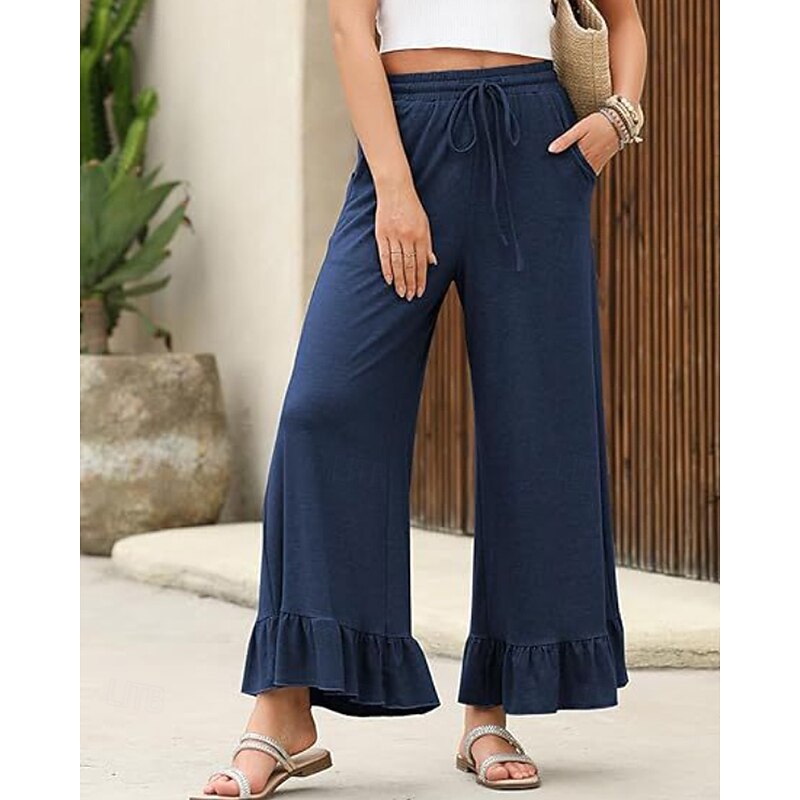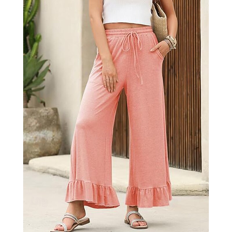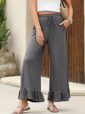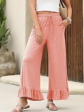More information about Women's Slacks Pants Trousers Casual Full Length Natural Plain Ruffle Pocket Elastic Drawstring Design Comfy Outdoor Outdoor Vacation Weekend Black Pink Army Green Dark Navy Summer Regular Fit