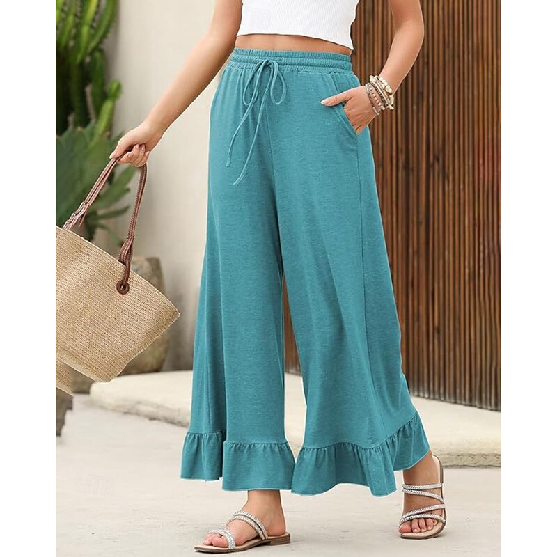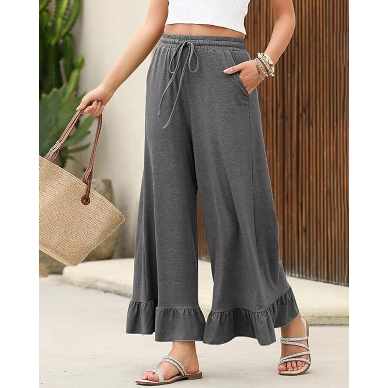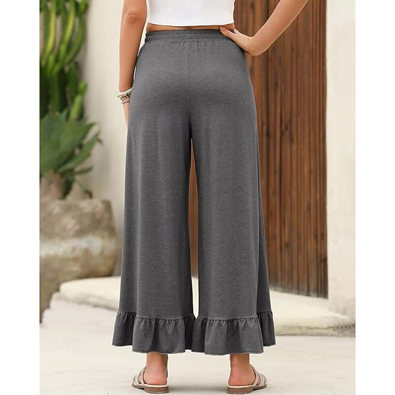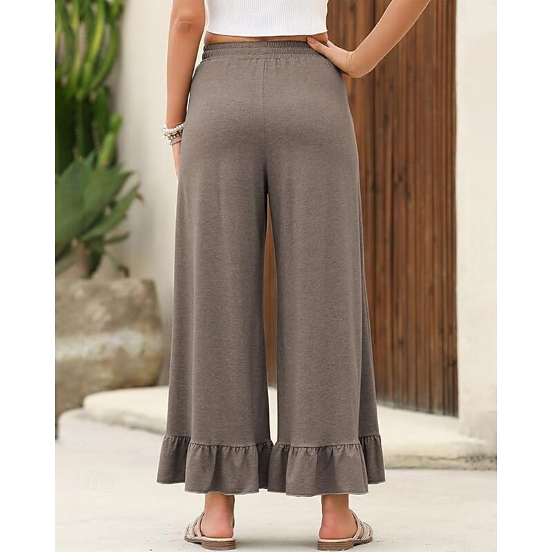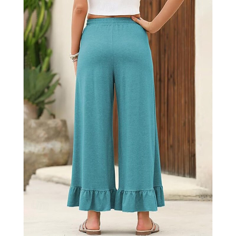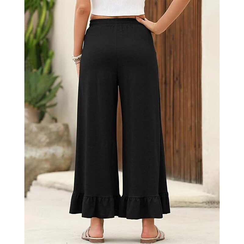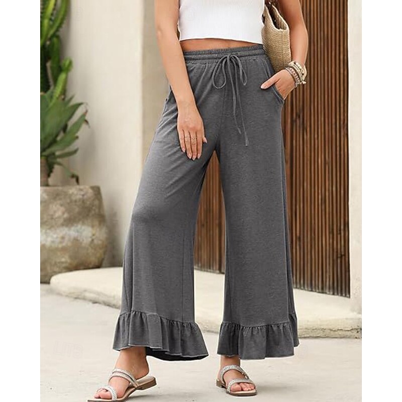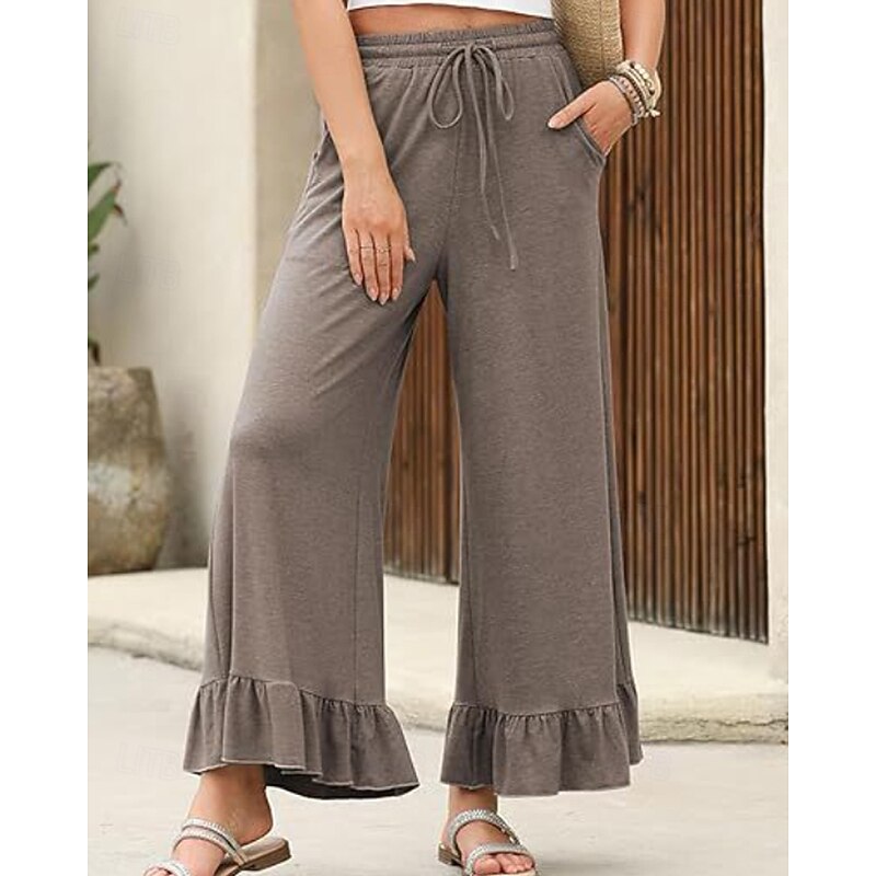 More information about Women's Slacks Pants Trousers Casual Full Length Natural Plain Ruffle Pocket Elastic Drawstring Design Comfy Outdoor Outdoor Vacation Weekend Black Pink Army Green Dark Navy Summer Regular Fit