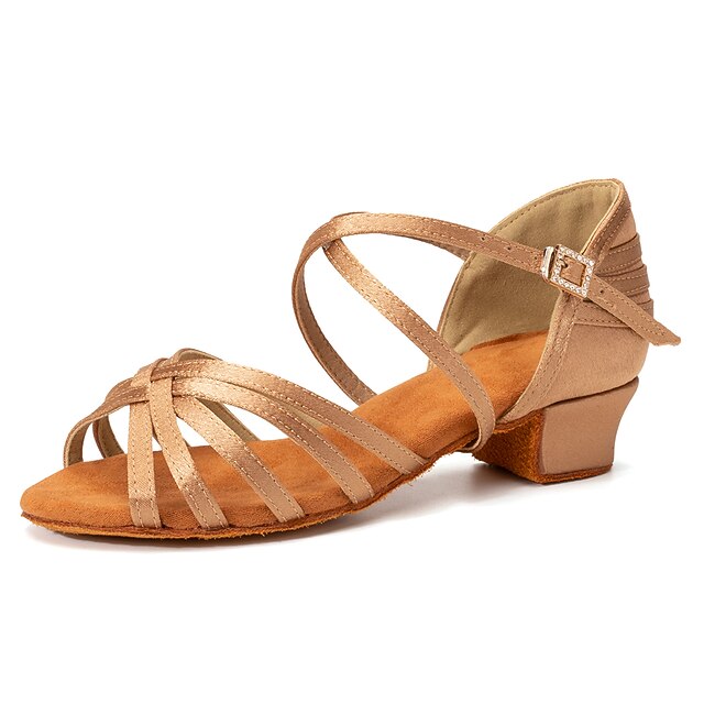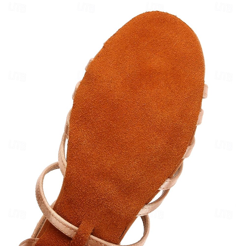 Highlights [Fabric] : Crafted from luxurious satin, these women's dance shoes offer a smooth and shiny finish that adds elegance to your dance ensemble. The satin material provides a sleek appearance while ensuring comfort during wear. [Fit] : Designed with a chic open-toe style and multiple thin straps that crisscross over the foot, these shoes provide a combination of style and secure fit. The adjustable ankle strap with a convenient buckle ensures a snug fit, ideal for extended dance sessions. [Design Highlights] : The shoes feature a modest 1.38-inch thick block heel that balances stability with a feminine touch, making them perfect for dancing and formal events. The supple suede insole enhances comfort for prolonged use, while the suede outsole offers flexibility and traction on dance floors, allowing for smooth and controlled movements. [Occasions] : Perfect for indoor events, ballroom dance, and performances such as Salsa, Tango, and Cha-Cha. These dance shoes are suitable for both amateur and professional dancers, making them ideal for a variety of dance occasions. [Size] : Available in sizes ranging from 34 to 41, these shoes cater to a broad audience. They are offered in color options including Black, Beige, Pink, and Dark Brown, ensuring a perfect match for any dance outfit. Perfect for everyday use. top-grade materials and excellent craftsmanship ensure long-lasting durability.