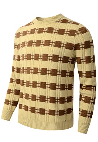 • Design: This long-sleeved knitted pullover sweater design with argyle patterns. The personalized knitting pattern is different from traditional sweaters with no pattern, making this sweater look more distinctive. Contrasting color design makes this sweater look more impactful. The sweater adopts a crew-neck design, the cuffs and hem are ribbed and closed tight, it plays a good role in keeping warm, and will not easily to rise or fall when you move