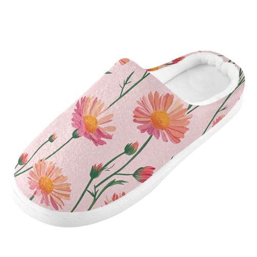 JUNZAN Cute Calendula Pink Mens Home Cotton Slipper Non Skid Memory Foam Guest Slippers for Indoor Birthday Presents 6-7 4