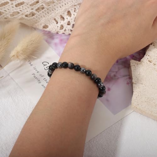 • 【Triple Protection Beaded Bracelet】Black Obsidian: Creates a shield of protection to ward off negative or harmful energies. Silver Sheen Obsidian: Extremely protective stone,shielding from negative energy and psychic attacks. Tourmaline: Is a powerful crystal grounding stone.It protects and heals on physical,emotional,spiritual.Hematite: Is an excellent stone for protection from negativity gives healthy and healing.This bracelet help you face the challenges and difficulties in life positively, absorb negative energy and protect you from negative impacts.