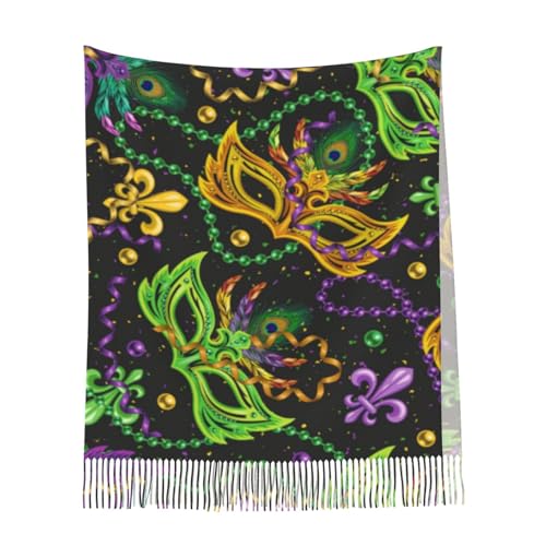 sought-after ! Womens Mardi Gras Cashmere Scarf, cozy Shawl Mardi Gras Green Print, Pashmina Scarves Wrap for Wedding Evening Dresses