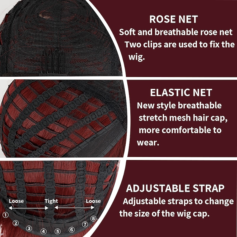 Wine Wigs for Women Synthetic Wig Natural Straight Braid Neat Bang Wig Burgundy Long Synthetic Hair Women's Cosplay Party Mixed Color Christmas Party Wigs 8