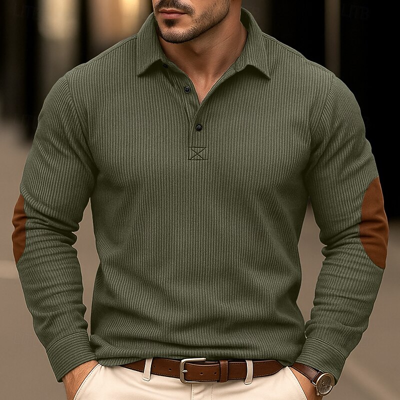 More information about Men's Corduroy Shirt Casual Sports Lapel Long Sleeve Fashion Basic Color Block Plain Patchwork Buttons Spring Fall Fall & Winter Regular Fit Grey Brown Navy Blue Army Green Corduroy Shirt