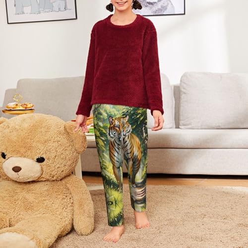 HOT ! Pajama Pants Pajama Bottoms with Elastic Waistband Sleepwear Lounge Pants, Tiger Walking Jungle