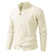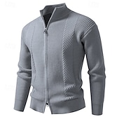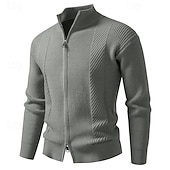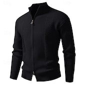 More information about Men's Sweater Cardigan Sweater Ribbed Knit Short Knitted Solid Color High Neck Vacation Fashion Casual Daily Wear Clothing Apparel Spring & Fall Black Red M L XL